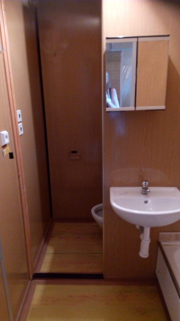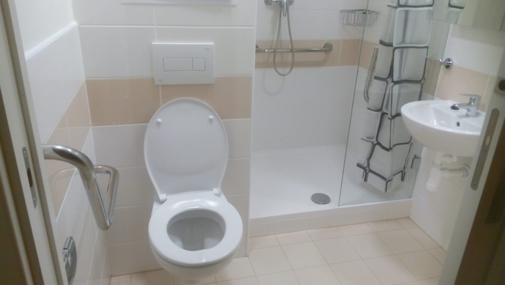 V částečně zděných koupelnách s keramickými obklady a dlažbou (nášlapná vrstva) teď mohou nájemníci využívat moderní zařízení, jsou vybaveny novými sprchovými kouty, umyvadly a WC.
