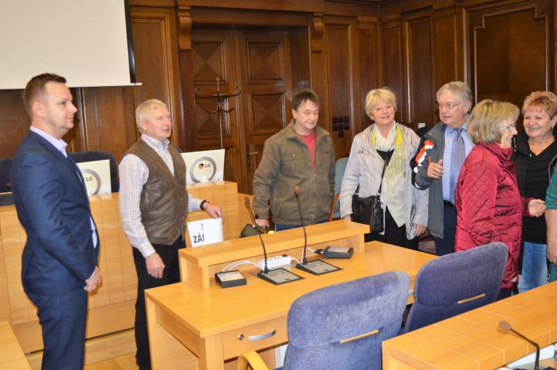 Lehce dovzdělat se je rozhodl i náměstek primátora Pavel Machala, který přítomné přivítal a krátce pohovořil o historii města. Zmínil zajímavosti o magistrátní budově, například o tom, jak vznikala plátna s vyobrazením Místku i Frýdku, umístěná právě ve velké zasedací síni, i o tom, kolik magistrátních budov se ve městě nachází a kolik v nich je úředníků a zaměstnanců. Málokdo taky věděl, že ve frýdecké budově kdysi také úřadovali četníci, kteří tu měli k dispozici i šatlavu, nebo že v horních podlažích byly byty. V souvislosti s 750. výročím města si účastníci také prohlédli stylové nově vytvořené dřevěné pamětní desky se jmény všech purkmistrů, starostů a primátorů. Společně také zavítali do miniexpozice místní výtvarnice Elišky Servátkové, která se nachází v budově magistrátu, a na památku si odnesli drobné dárky a Výběrové kalendárium, ve kterém jsou zaznamenány významné okamžiky v dějinách města od roku 1267, jež doplňují dobové i současné fotografie.