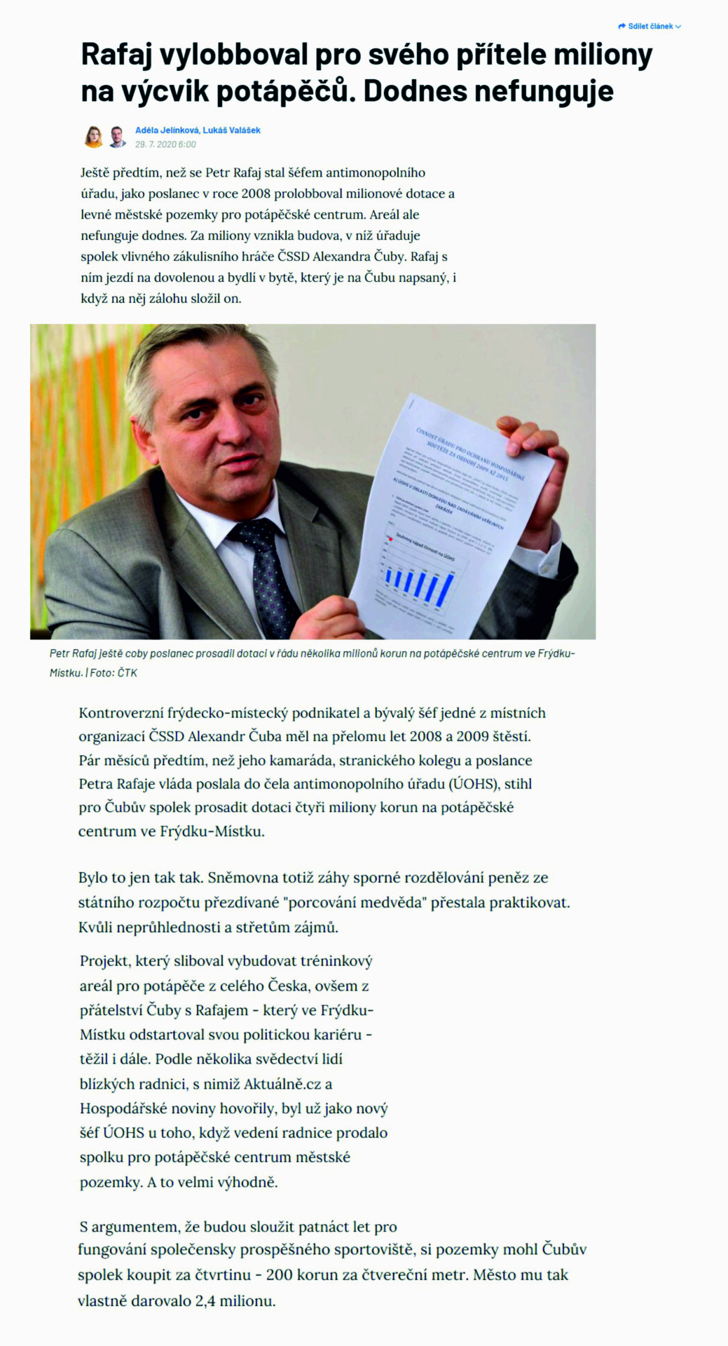 Celý článek najdete zde: Rafaj vylobboval pro svého přítele miliony na výcvik potápěčů. Dodnes nefunguje – Aktuálně.cz