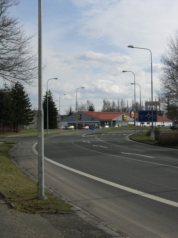 Výstavba okružní křižovatky v místě čtyřramenné křižovatky ulic Frýdlantská a Bezručova řešila zklidnění dopravy v ulici a zlepšení odbočení na ul. Bezručova (příjezdová cesta na AS).