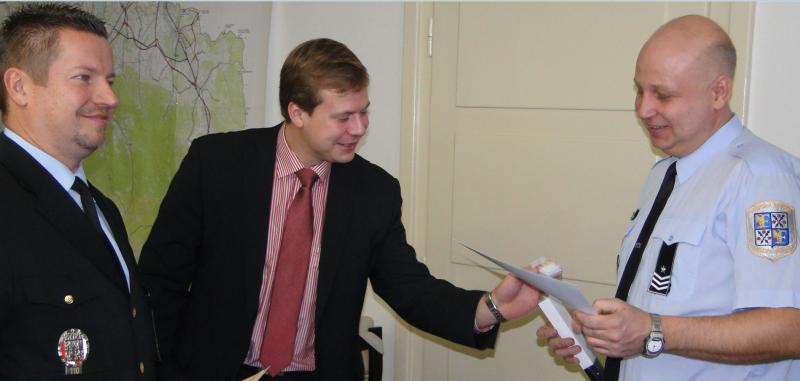 Strážníci dostali stužky za věrnost