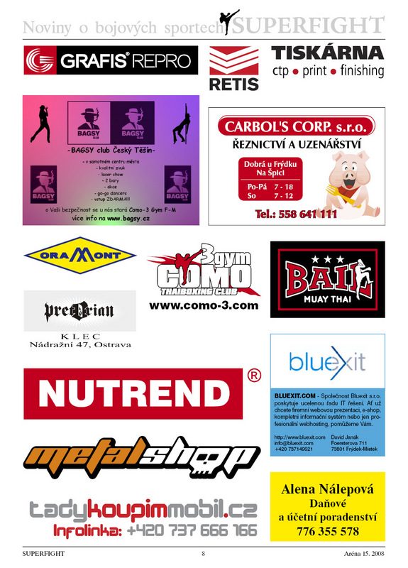 Klub Como-3 gym nezahálí a neustále zvyšuje kvalitu svých služeb. Na Aréně 15 v Ostravě,která bude 27.11. vydává jedenácté číslo novin o Bojových sportech Superfight. Pro všechny zájemce je na Aréně 15 nabízen ZADARMO.