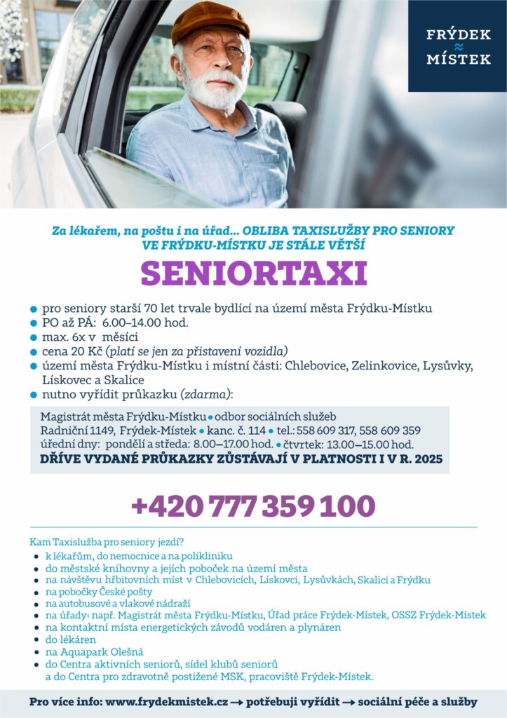 Potřebné formuláře ke stažení zde: TAXISLUŽBA PRO SENIORY FRÝDEK-MÍSTEK – Sociální péče a služby | Frýdek-Místek