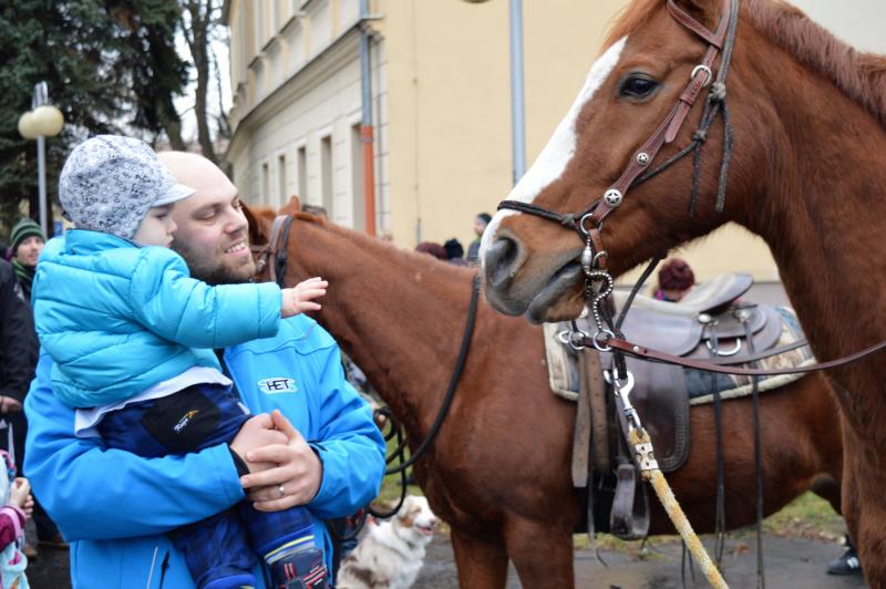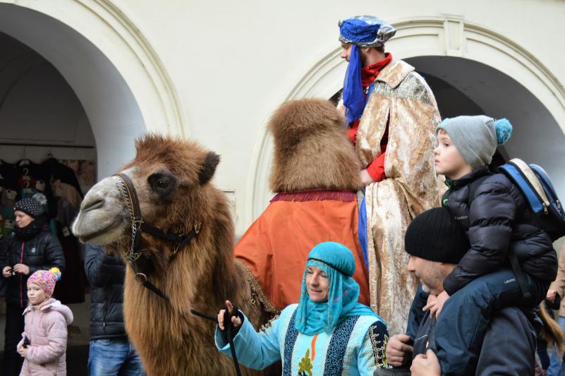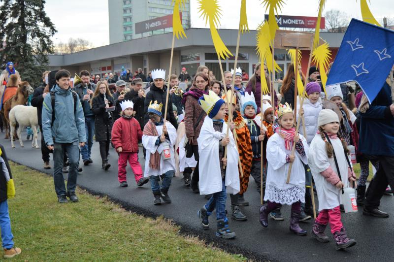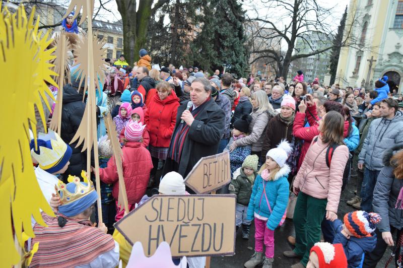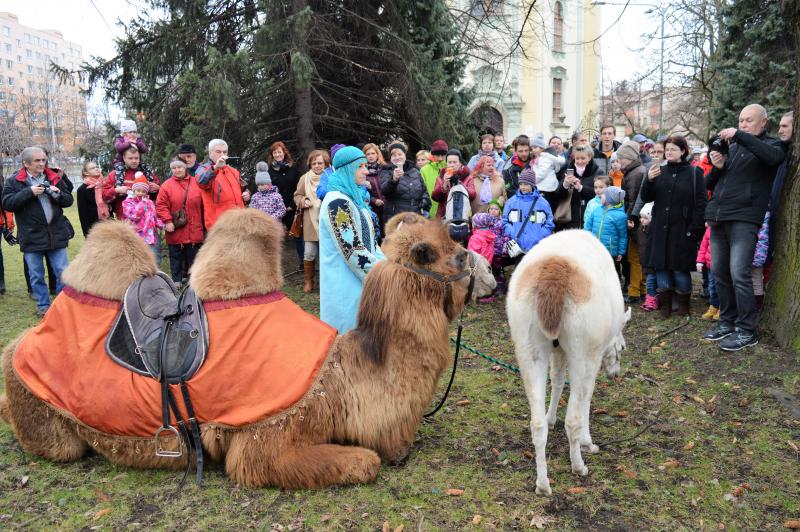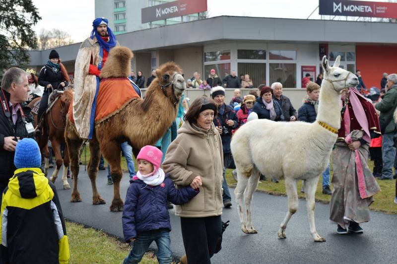 Před kostelem i na náměstí zaznívaly v různých formách informace, které dětem přibližovaly tříkrálovou legendu i tradici, která je dnes spojena s Tříkrálovou sbírkou, kterou organizuje Charita České republiky. Z pódia pak děkan Josef Maňák vzpomínal, jak akce skromně začínala, aby se po čtrnácti letech, i s podporou Statutárního města Frýdek-Místek, stala takovým fenoménem. A jak byl v euforii, nadhodil, že možná průvod jednou ozdobí i sloni. „Tomu, že se pravidelnou součástí našeho průvodu stanou velbloudi, taky svého času nikdo nevěřil,“ podotkl děkan, který vyzval k otevření srdcí a pomoci potřebným a současně, stejně jako primátor, popřál městu a občanům do nového roku vše nejlepší. „Je to skvělá akce, u níž jsou skutečně tahákem živá zvířata, s nimiž už děti nemají tolik možností se potkat. Není to jen o velbloudech, ale i „obyčejný“ kůň jim dělá radost, chtějí se s ním vyfotografovat, pohladit si ho. Je to takový návrat k přírodě a vlastně i k tradicím, propojeným s dneškem. Vyrazí průvod v dobových kostýmech, a i když musí jít po betonu a přejít frekventovanou cestu za účasti městské policie, nerozbíjí to tu myšlenku a lidi a děti to baví, což jsme strašně rádi,“ hodnotil průvod primátor Michal Pobucký. „Já myslím, že je fajn, když se v hraném příběhu dozví, co například symbolizuje zlato, kadidlo a myrha, přinesené dary, nebo třeba jak vznikla tradice obcházení domů a koledování či jaký je význam popisování dveří svěcenou křídou na ochranu. Děti se dozví i o charitativní sbírce a potřebě pomáhat,“ doplnil náměstek primátora Richard Žabka.