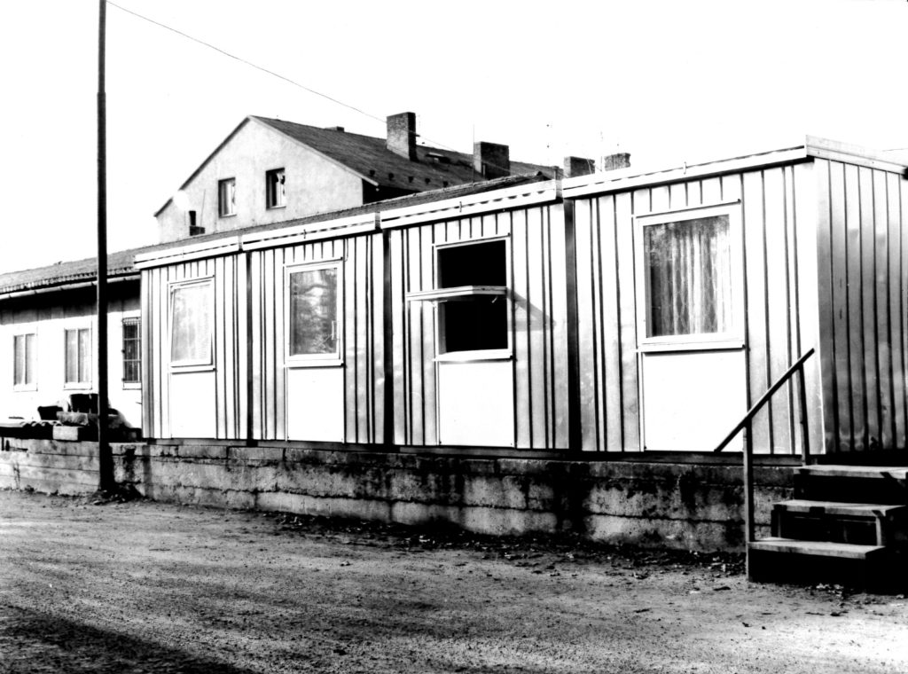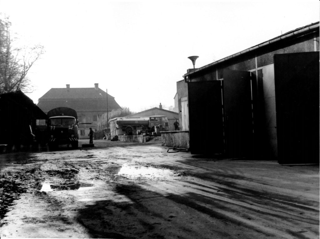 Foto: původní areál na Slezské ve Frýdku (před výstavbou sídliště) a vrátnice v již současném areálu na ulici 17. listopadu v Místku