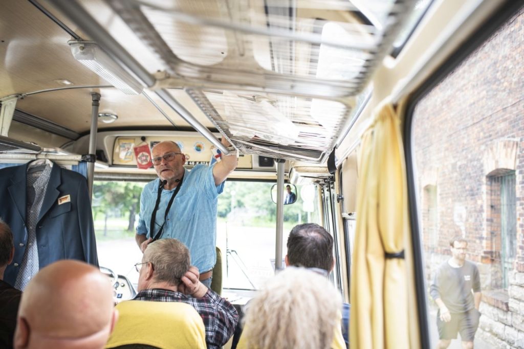 Pokud návštěvníci nastoupí do historického autobusu Karosa ŠL 11, zažijí díky průvodcům cestu do historie textilnictví ve Frýdku-Místku. Komentované prohlídky připomenou jedinečnou industriální architekturu, skutečnou šichtu v textilkách a dřívější život jak z pohledu dělníků, tak i z perspektivy jejich majitelů. A také se dozví z úst bývalého zaměstnance, který zasvětil celý svůj profesní život práci ve Slezanu, spoustu pikantností.