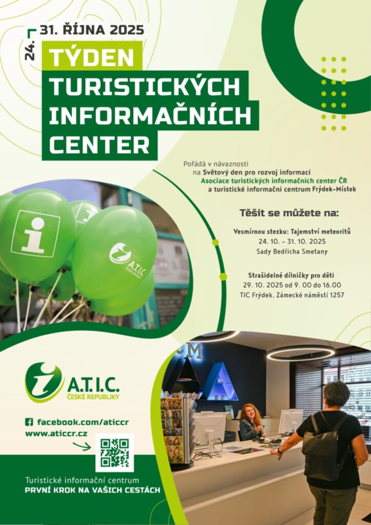 Turistické informační centrum ve Frýdku-Místku se i letos připojuje k celostátní akci Týden turistických informačních center, která proběhne od 24. do 31. října 2025. Akce má přiblížit veřejnosti, jak rozmanité služby a zážitky mohou infocentra nabídnout – nejen informace, ale i zábavu pro celou rodinu.