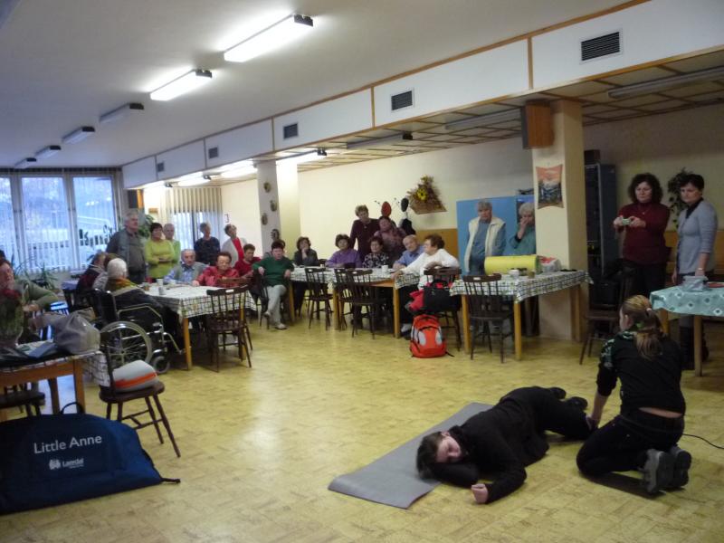 Samotný výklad prováděly převážně studentky Střední zdravotnické školy, Frýdek-Místek a byl obohacený vždy názornými ukázkami. Senioři měli možnost si různé metody poskytování první pomoci sami přímo vyzkoušet a byl ponechán prostor i pro jejich dotazy. Senioři si tak rozšířili své povědomí např. v oblasti resuscitace, jak správně přivolat pomoc, co dělat, když někoho postihne mozková cévní příhoda, o příznacích infarktu, cukrovky a mnoho dalších cenných informací. Tyto přednášky se setkaly s velkým zájmem a pozorností ze strany našich seniorů.