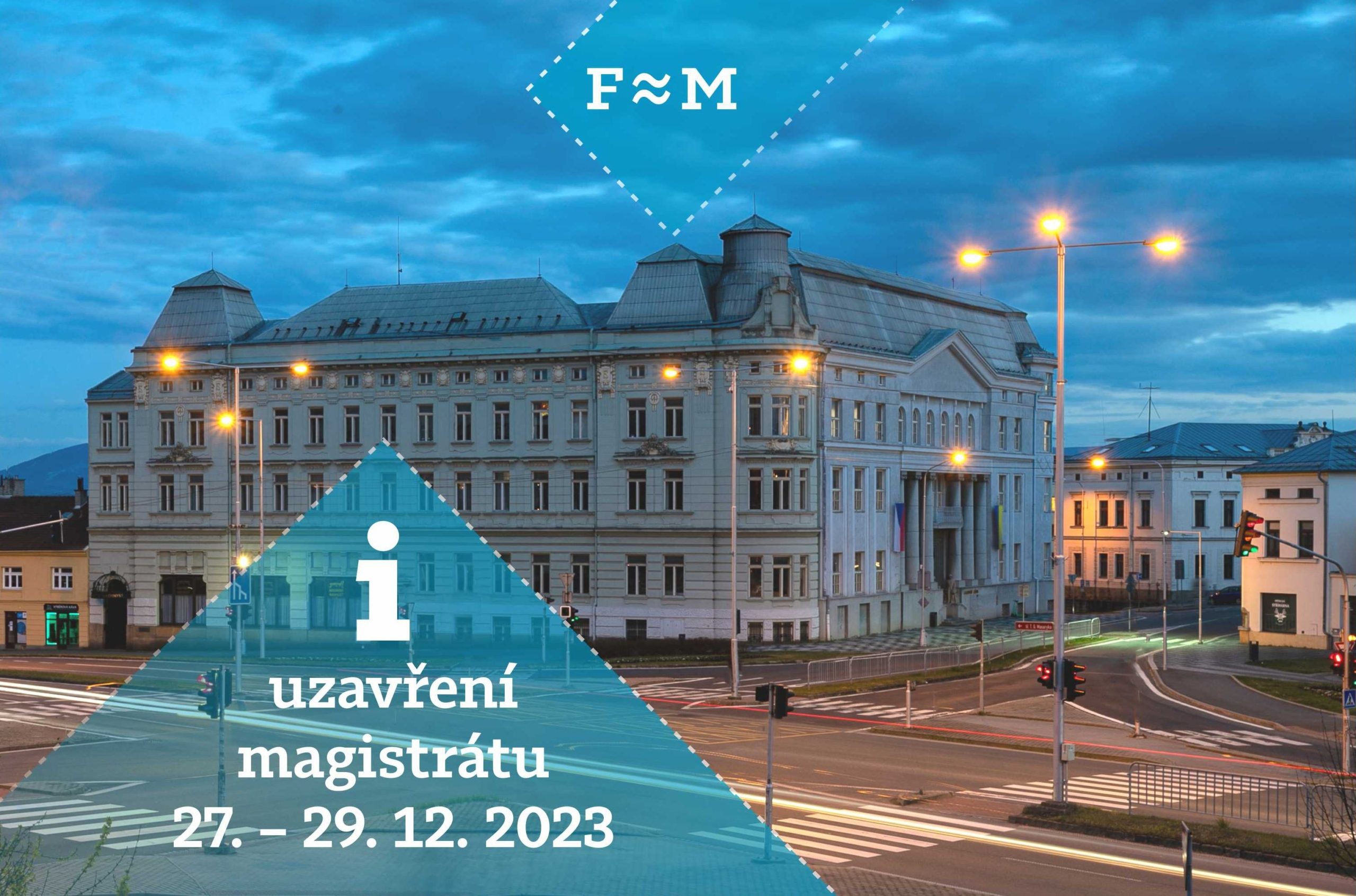 dovolujeme si Vás informovat, že ve dnech od 27. 12. do 29. 12. 2023 bude Magistrát města Frýdku-Místku uzavřen.