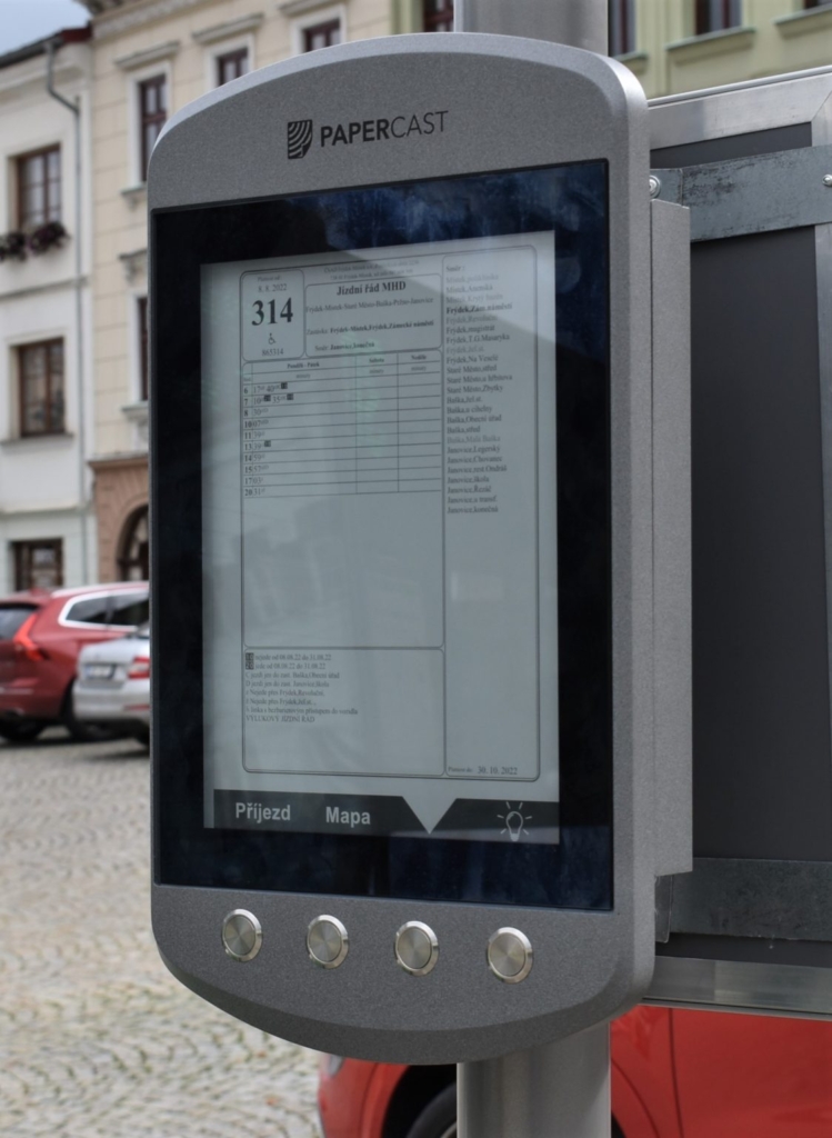 Frýdek-Místek pořídí další panely na zastávky MHD. Do systému, který informuje ve městě občany o příjezdech a odjezdech autobusů, tak přibydou 3 velké LED panely a 6 e-paper panelů. S dalším rozšířením naváže dopravce.