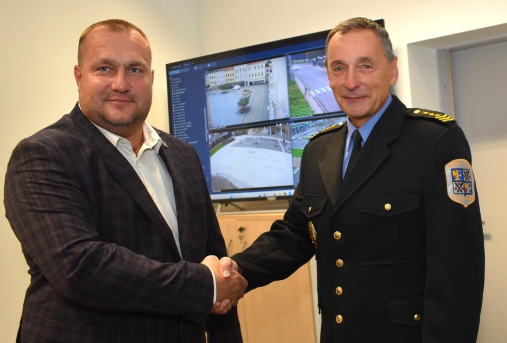 „Děkuji panu řediteli Ivo Kališovi za jeho práci a velký podíl na budování městské policie ve Frýdku-Místku,“ poděkoval náměstek primátora pro oblast bezpečnostních rizik, požární ochranu, prevenci kriminality, městské policie a ochranu veřejného pořádku Lukáš Kmec (ANO 2011). Na snímku se náměstek Lukáš Kmec loučí s Ivo Kališem.
