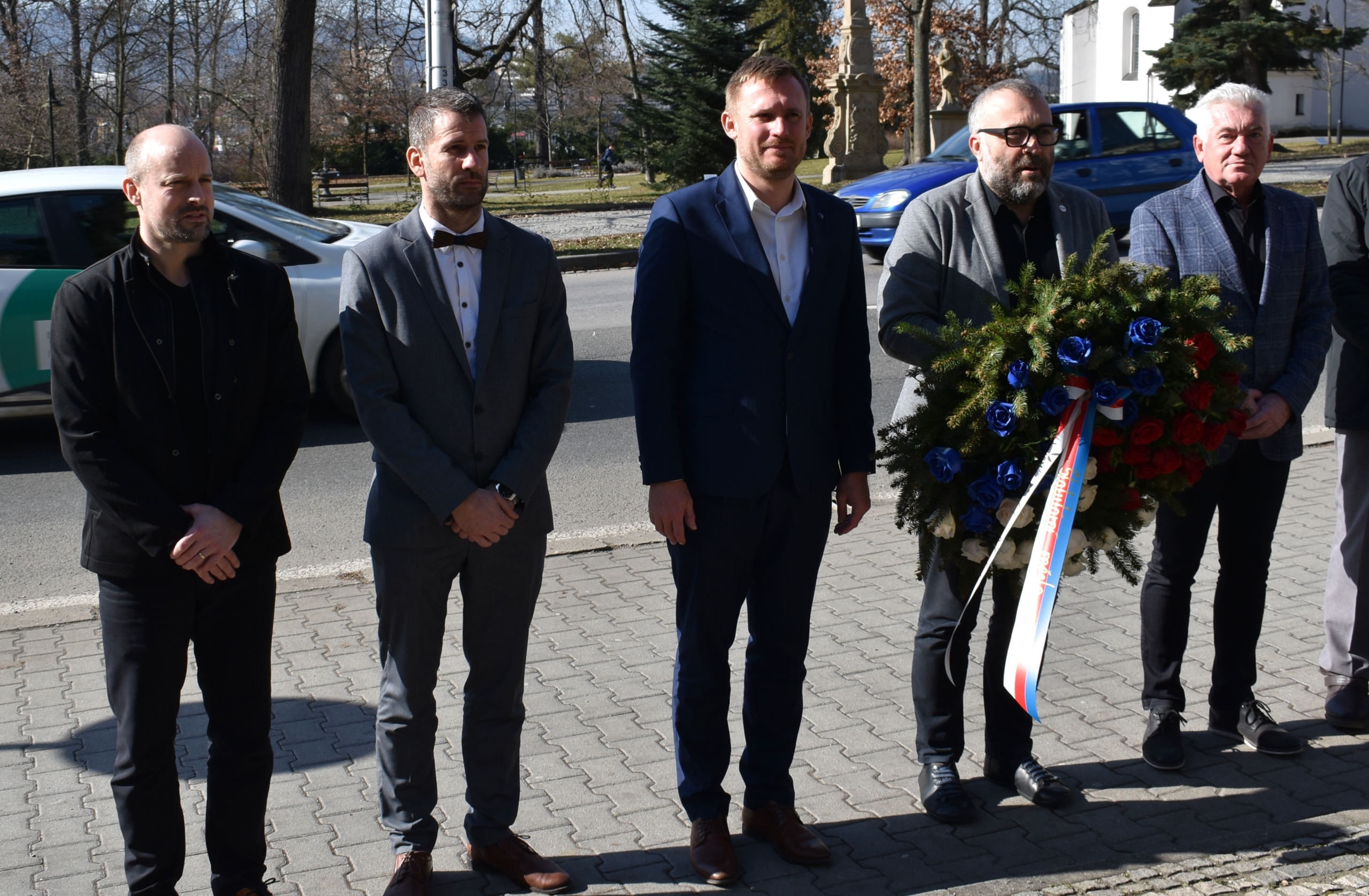 Výročí si připomenuli členové vedení města primátor Petr Korč (Naše Město F-M) a náměstci Marcel Sikora, Lukáš Slíva (oba SPOLU), Miroslav Bártek (Naše Město F-M) a zastupitel a předseda finančního výboru Martin Kleinwächter (SPOLU), kteří položili k památníku T. G. Masaryka na stejnojmenné třídě věnec.