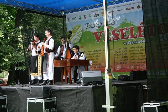 V momentě, kdy odbila 14.00 hodina, se na podiu objevil Velký dechový orchestr Válcoven plechu Frýdek-Místek. Pod taktovkou mladého dirigenta Jana Mareše zahrál orchestr nejen pochody, valčíky, ale také známé filmové hity jako Rain drops keep falling on my head nebo úvodní píseň z kresleného seriálu Flinstounovi. Následovalo vystoupení cimbálové muziky Friš z Ostravy s bohatým repertoárem, ve kterém jste mohli zaslechnout sklady z Moravy, Slezka a různých regionů Slovenska.
