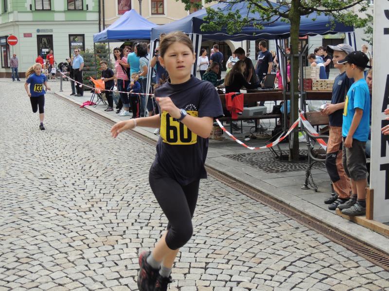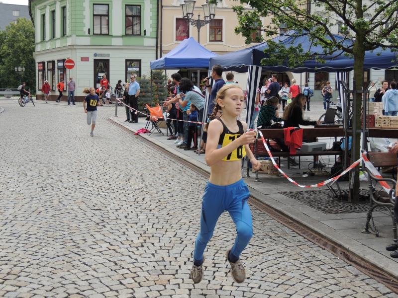 V 10 hodin nejprve vyrazili na nesoutěžní běh nejmenší caparti s rodiči, potom se již bojovalo o medaile a ceny. Z frýdecko-místeckých běžců se na stupně vítězů jako první prosadil mezi chlapci 2005-2007 na 3.místo Josef Hájovský, potom už medailí pro přádající oddíl přibývalo – mezi děvčaty 2003-04 na 2.místo Klára Ningerová, 3. Amálie Mynářová, mezi stejně starými chlapci doběhl druhý Adam Dokoupil, třetí Robin Dorotík. V předžačkách zvítězila Eliška Kopcová před Janou Swierkošovou, mezi chlapci vybojoval druhé místo Šimon Skuplík před Lukášem Skotnicou. Zatímco v mladších žácích se prosadil pouze Jan Kváš na 2.místo, žákyně obsadily stupně vítězů úplně v pořadí 1.Kristýna Škanderová, 2.Petra Pavlásková, 3.Tereza Uherková. Stejně to vypadalo i ve starších žačkách, kde vyhrála Helena Benčová, před Katkou Krtkovou a Evou Pištekovou. V žácích zvítězil Dominik Haltof, před Janem Tesarčíkem a Dominikem Janečkem. V dorosteneckém souboji sester Siebeltových se tentokrát radovala Kateřina Siebeltová, před Veronikou, třetí doběhla Michaela Danysová. V dorostencích se prosadil na 2.místo Daniel Raška. V 11 hodin se dalo do pohybu 85 běžců směr náměstí ve Frýdku, kde oběhli kašnu a čekala je stejná cesta zpět. Nejlépe si vedli domácí, když zvítězil Petr Lukeš za 16:12 minuty, před Pavlem Michnou 16:14 min. a třetí doběhl Tomáš Jurák z Kopřivnice za 16:16 min. Mezi ženami zvítězila Veronika Siebeltová, která zvládla trať mezi dvěma našimi náměstími za 18:52 minuty, druhá doběhla Lucie Szotkowská z Jablunkova v čase 19:10 min, a pro bronzovou medaili si doběhla Kateřina Siebeltová za 20:45 min.