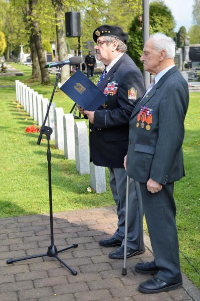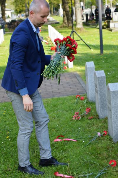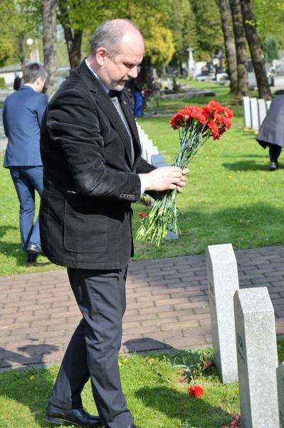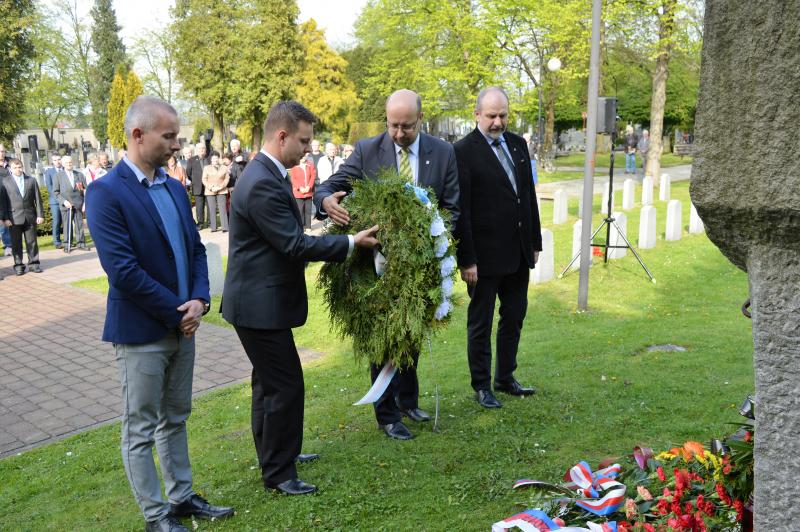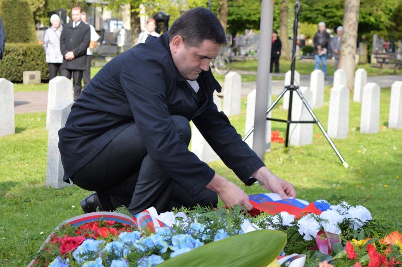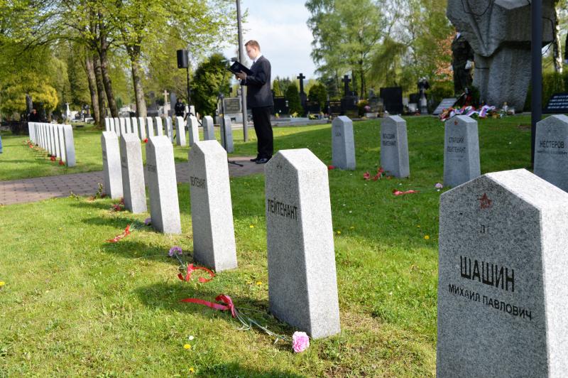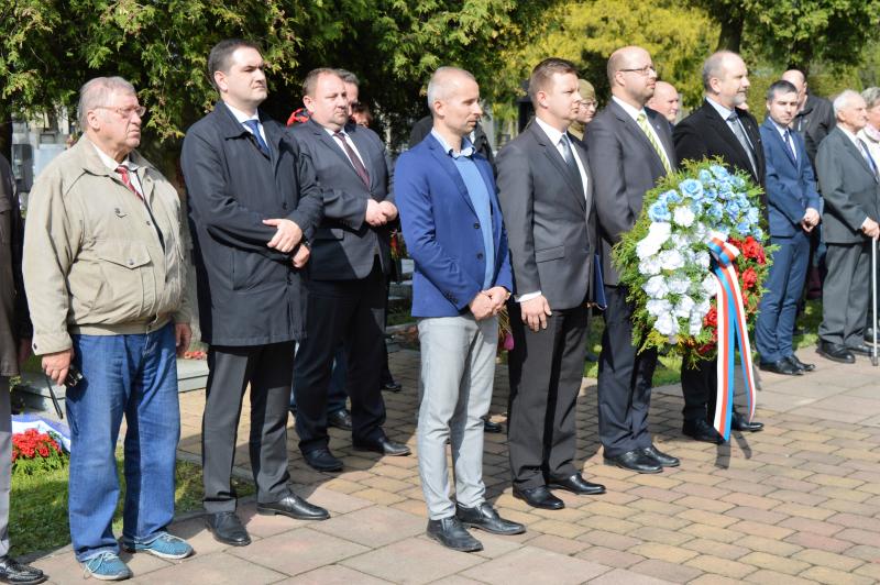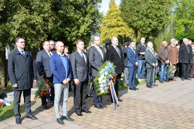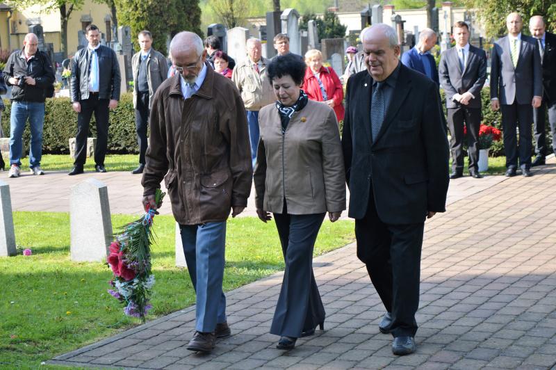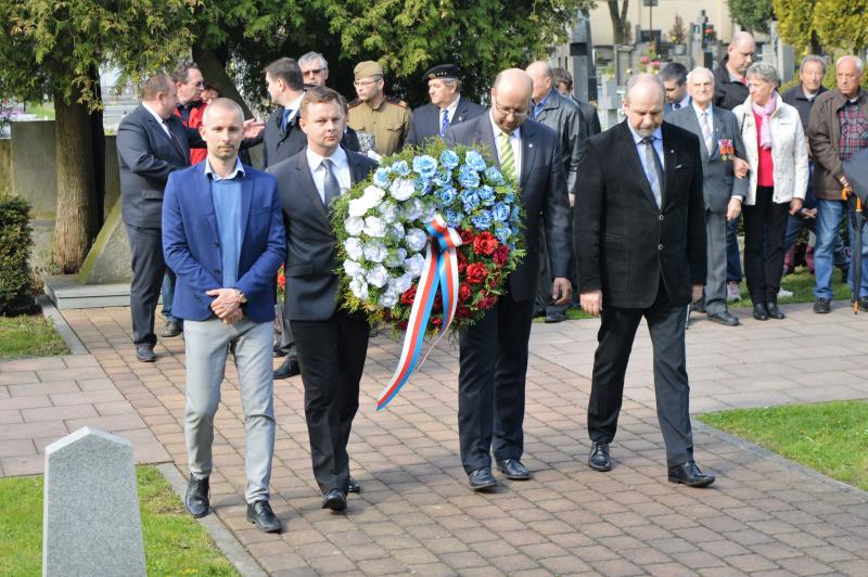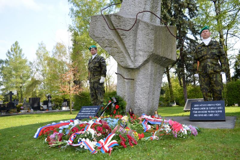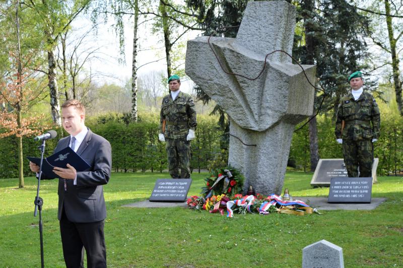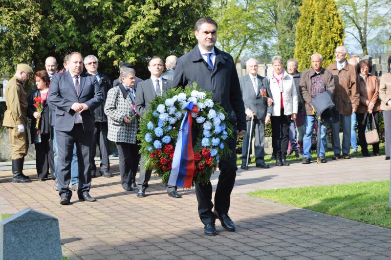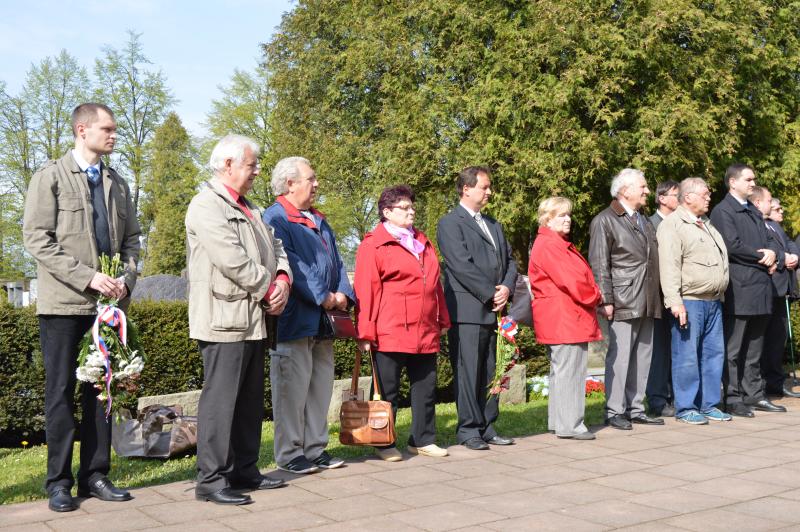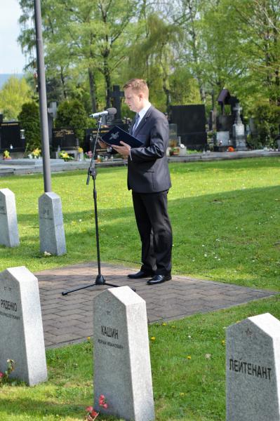 Dalším vystupujícím u památníku, kde jsou pohřbeny ostatky 966 vojínů a 77 důstojníků Rudé armády, byl za Československou obec legionářskou Petr Majer, kterému stál po boku pětadevadesátiletý Mikuláš Ganišin. Promluvil také zahraniční host – tajemník Generálního konzulátu Ruské federace v Brně Sergej Mitjajev. Ten poděkoval všem, kteří toto pietní místo na frýdeckém hřbitově s mohylou padlým rudoarmějcům, která byla odhalena 17. března 1946, udržují. Důstojným protějškem památníku s pohřebištěm sovětských vojáků a velitelů je skupina čestných hrobů našich občanů, kteří také přišli o život na prahu svobody v pohnutých květnových dnech.