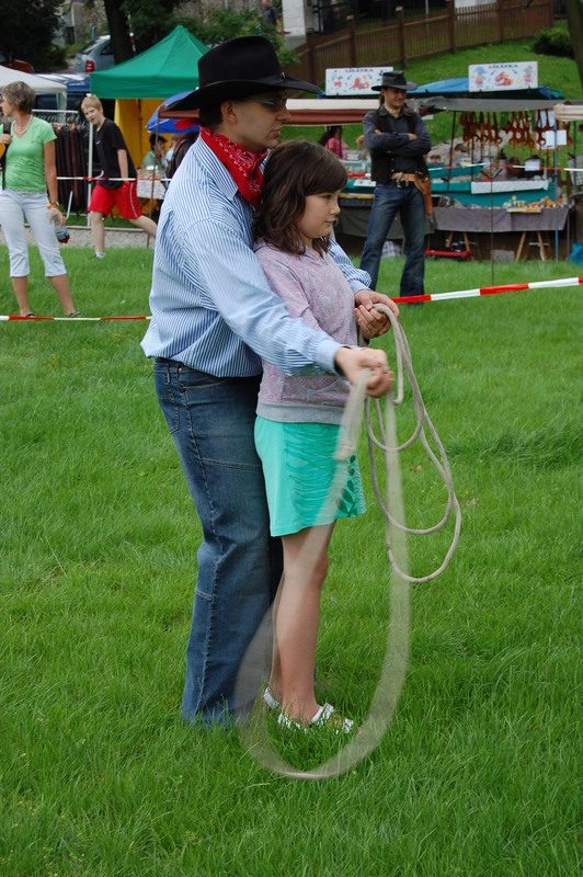 Odpoledne nabídlo dětem možnost vyzkoušet si řadu kovbojských dovedností jako jízdu na koni, házení lasem a tomahavkem, střelbu z luku a další. Děti za splněné úkoly sbíraly dolárky, které si proměnily za sladkosti a jiné odměny. Tou největší byl poukaz pro celou rodinu na týdenní pobyt ve Westernovém městečku Šiklův mlýn.