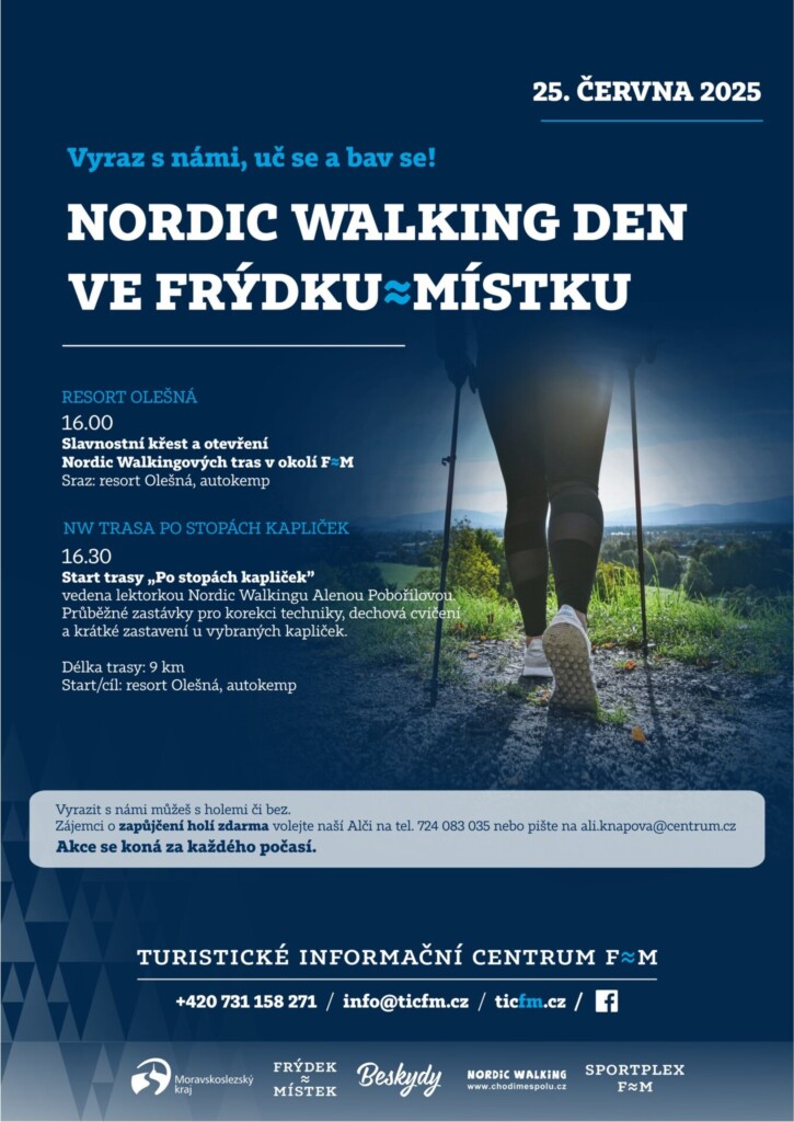 Město jako na dlani, genius loci sakrálních památek, romantika v podhůří Beskyd. To vše nabídnou čtyři nově vzniklé značené trasy pro nordic walking v okolí Frýdku-Místku. Jejich slavnostní otevření se uskuteční ve středu 25. června v Autokempu resortu Olešná.