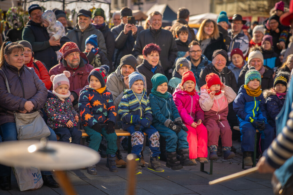 Zábavný program na místeckém náměstí bude pokračovat až do půl druhé odpoledne. Pro nejmenší jsou připraveny i dvě pohádky – jarmareční, která začne patnáct minut před 11 hodinou. V pravé poledne to pak bude veselý příběh o tom, Jak šlo tele do světa v podání Divadla eMILLIon.