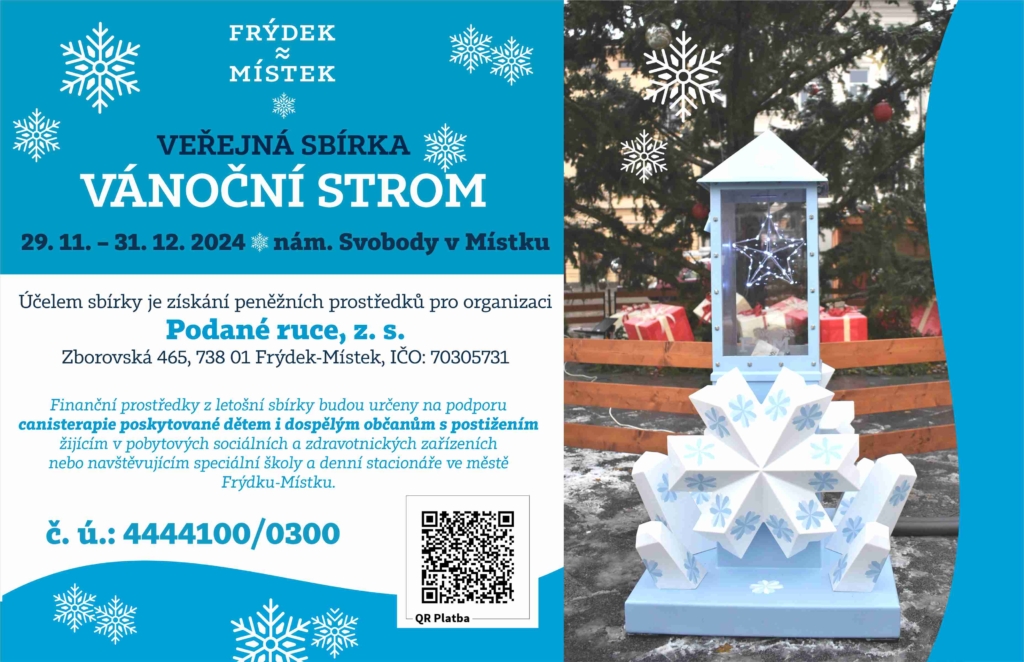 Odstartovala městská sbírka Vánoční strom. Dar je možné vhodit do kasičky pod vánočním stromem na náměstí svobody v Místku, případně poslat na transparentní účet. Sbírka potrvá do 31. 12. 2024.