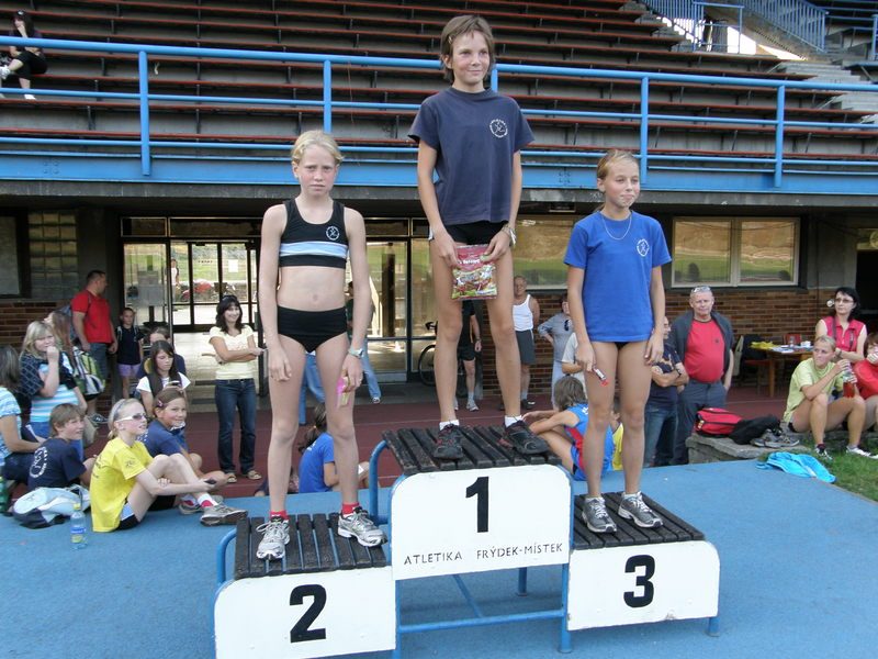 FOTO 2 – na stupních vítězů nejlepší předžačky /98-99/ : 1. Eva Pišteková, 2. Helena Benčová, 3.Katka Krtková