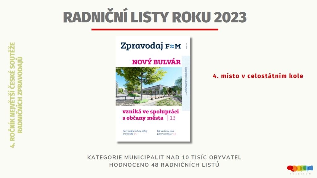 Naše městské noviny zaujaly odborníky. Porota ve 4. ročníku soutěže Radniční listy 2023 ocenila Zpravodaj F-M jako nadprůměrné periodikum s vysokou obsahovou kvalitou.