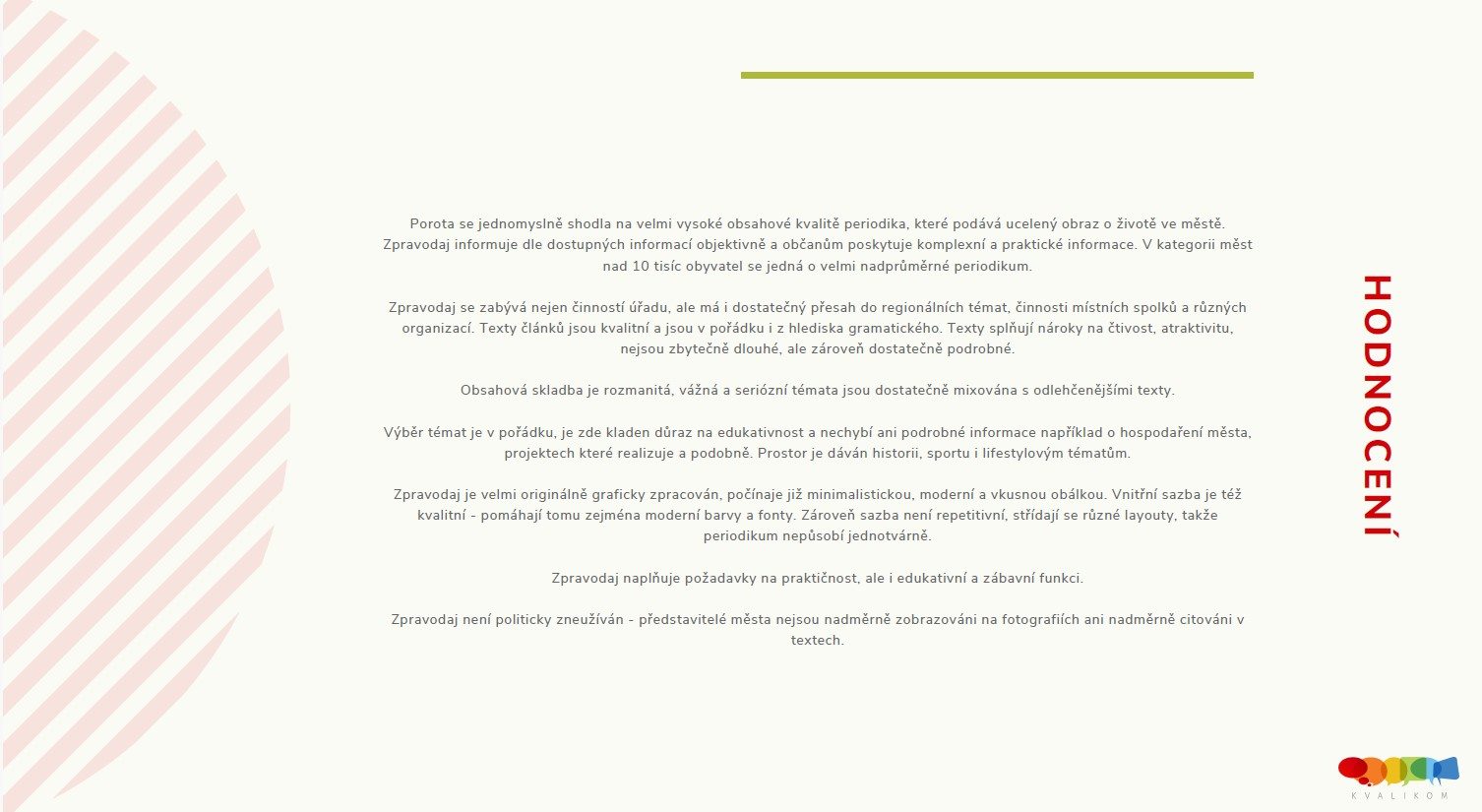 Naše městské noviny zaujaly odborníky. Porota ve 4. ročníku soutěže Radniční listy 2023 ocenila Zpravodaj F-M jako nadprůměrné periodikum s vysokou obsahovou kvalitou.