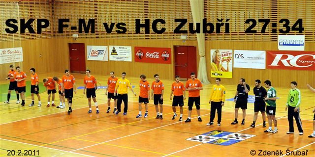 Hráči SKP se prosazovali přes dobře hrající obranu hostí jen těžce , když se jim to podařilo, tak byl poslední instancí výborný Malina v zuberské brance. V úvodu druhého poločasu narostlo vedení hostů dokonce do dvanácti brankové výše (38. minuta 13:25) Až v posledních minutách se bojovným výkonem podařilo domácím snížit alespoň na rozdíl sedmi branek (54. minuta 24:31), na víc však síly frýdeckomísteckým hráčům proti velmi dobře hrajicímu Zubří nestačily.