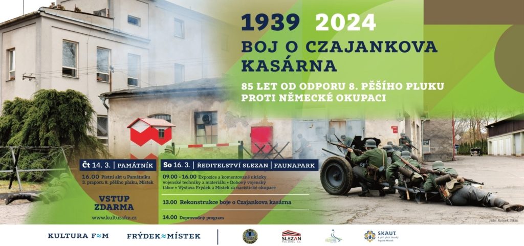„V březnu si připomínáme půlkulaté jubileum hrdinného odporu místecké posádky Czajankových kasáren proti německým okupantům. Vzpomínám si na velkolepé oslavy 80. výročí před pěti lety. I nyní jsme proto připravili rozsáhlou vzpomínkovou akci s atraktivním programem. Těším se na setkání s vámi na rekonstrukci bitvy o místecká kasárna,“ uvedl primátor Frýdku-Místku Petr Korč (Naše Město F-M).